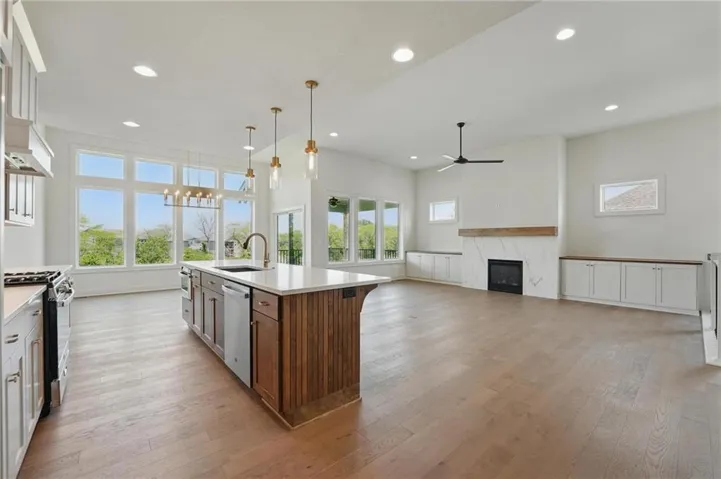 Model Home Now For Sale! New Price & Move In Ready!!! Stunning "Elm II" Ranch/Reverse 1.5 by Aspen Homes in a Prime Location! Discover the perfect blend of luxury and functionality in this Elm II Reverse 1.5, thoughtfully crafted by Aspen Homes. This exceptional home offers a spacious and inviting Great Room with gleaming hardwood floors, custom built-in cabinetry, and an abundance of natural light—creating an open, airy feel ideal for both relaxation and entertaining. The gourmet kitchen is a chef’s dream, featuring custom cabinetry, sleek quartz countertops, a generous walk-in pantry, a stylish designer backsplash, and a high-end gas range for all your culinary creations. Enjoy main-level living with a luxurious primary suite that includes a spa-like primary bath with a walk-in tiled shower, a double vanity, and an expansive walk-in closet. Additionally, the main level includes secondary bedroom and a versatile 3rd bedroom/office space with a stunning feature wall and elegant glass French doors. The finished lower level provides even more living space with plenty of windows and a fabulous wet bar, perfect for hosting gatherings or unwinding. Step outside onto the covered composite deck, where you can enjoy your premium walkout lot backing to serene trees and green space. This home also boasts a variety of energy-efficient features, including Energy Star windows, Energy Star\r\n