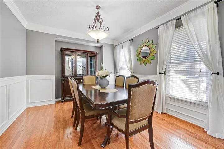 +"PublicRemarks": "Tucked away on a quiet street in Aspen Creek, this gorgeous two story boasts space & style! Step into a grand entry way with beautiful hard wood floors. A formal dining room with an easy flow into the eat in kitchen offer all the space you need for entertaining! Plenty of windows on the back of the house allow for abundant natural light and view of the private backyard with no houses behind. Upstairs you’ll find four roomy bedrooms including the spacious owners’ suite. You’re sure to appreciate the crown molding & elevated woodwork around the windows in this home, which are only 2 years old. On the lower level, the space continues with an open area to use as a family/theatre room or workout space. There’s also a non conforming 5th room with attached full bathroom and good amount of unfinished storage area. Before you leave, make sure you check out the expansive patio out back. Plenty of room for outdoor dining, relaxing, gardening and evenings around the firepit."