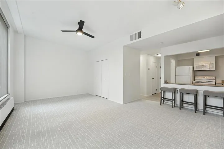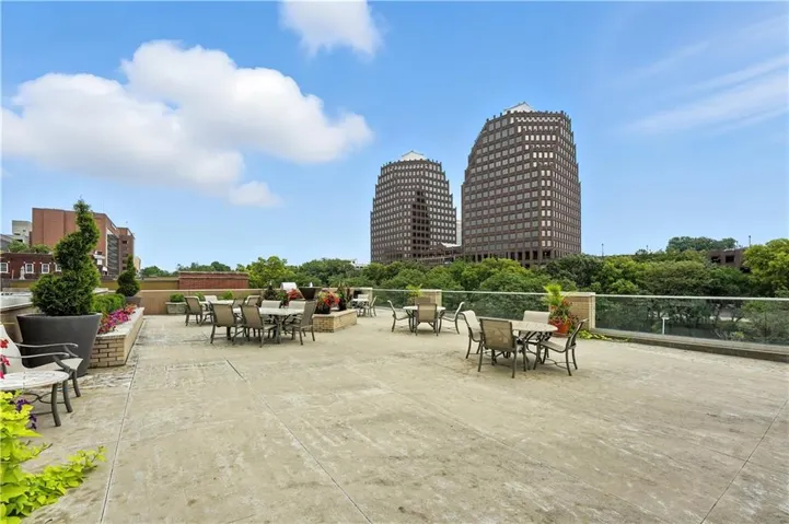 +"PublicRemarks": "This is one of the only condos in the building with 9 ft tall ceilings with fireplace facade. Brand new carpet runs throughout the unit, fresh paint, complemented by tiled kitchen floors, dishwasher, refrigerator, microwave, and oven/range. This spacious studio features large windows that fill the room with natural light and has all new light fixtures from Wilson Lighting. The oversized front closet will fit all your coats with plenty of space to double as a pantry. The HOA fees are one of the lowest in the building and INCLUDES HEATING AND COOLING, and water. Owner only pays for electricity in your unit and internet/cable. This unique unit has a secured garage space and dedicated storage. The building has undergone multi-million dollar renovations, including a stunning lobby, updated exterior, and refreshed common areas all monitored by a friendly 24/7 front desk staff. Residents enjoy two community lounges, a fitness center, large laundry facility with new machines, and a rooftop deck overlooking Mill Creek Park. Just one block from Mill Creek Park and St. Luke's Hospital, this unbeatable location offers a vibrant, low-maintenance lifestyle in the heart of KC."