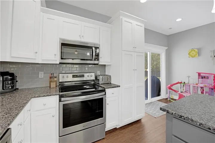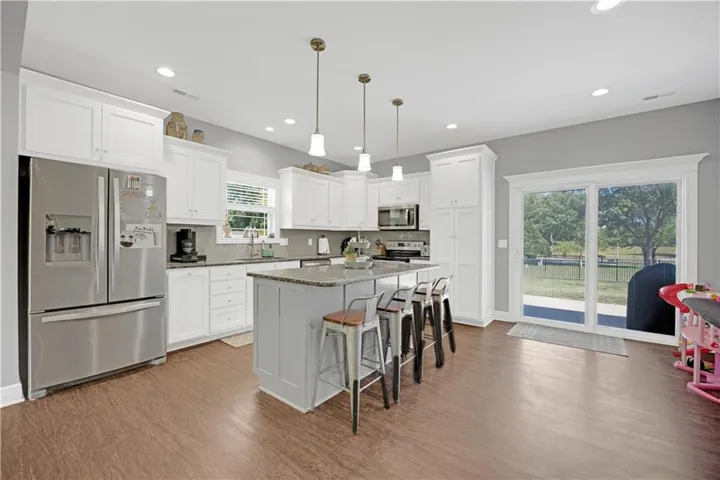 +"PublicRemarks": "BEAUTIFUL, MOVE-IN READY HOME ON A QUIET CUL-DE-SAC IN OLATHE! Fresh interior paint and gorgeous wood floors highlight the vaulted Great Room, creating a warm and inviting atmosphere. The light-filled vaulted kitchen and adjacent dining area feature crisp white cabinetry, granite countertops and stainless steel appliances, with easy access to the deck—perfect for summer BBQs and outdoor entertaining. The main level offers a private primary suite with en-suite bath, plus two additional bedrooms and a second full bath. The walk-out lower level (garage level) adds even more living space with a cozy family room and fireplace, fourth bedroom, third full bath and laundry, opening to a patio for relaxed outdoor enjoyment. Fantastic location close to shopping, dining, Heritage Park and just minutes to I-35. WELCOME HOME!"