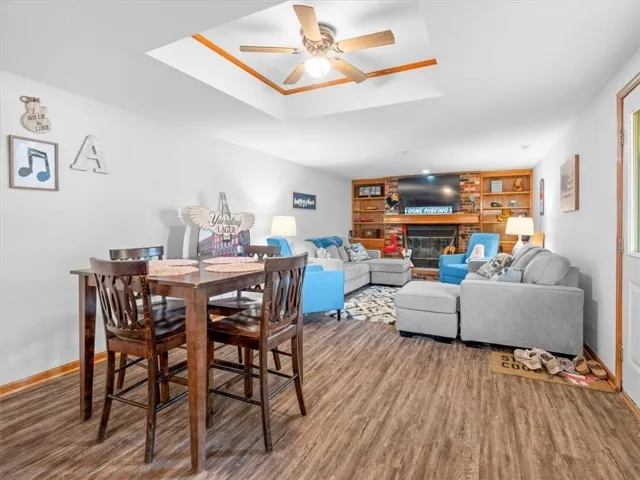 The finished basement expands your options with a large rec room highlighted by a brick fireplace, plus a second kitchen for entertaining or extended living. Step outside to enjoy two decks - one wrapping around an above-ground pool - all overlooking a fenced backyard with a firepit area. With fresh flooring and interior paint throughout, this home is move-in ready and perfect for gatherings inside and out.