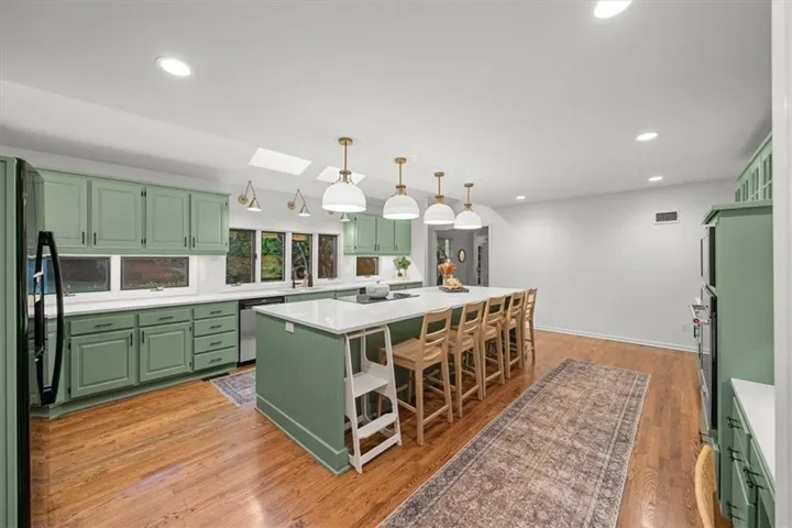 The huge, newly updated kitchen is the true centerpiece of the home, stunning quartz counter space larger than most restaurants, enough cabinets for every appliance and grandmother's China, and finishes that are both timeless but so in style. Fresh paint throughout enhances the bright and inviting atmosphere, complimented by two large living spaces that provide flexibility for gatherings, work-from-home needs, or space for the kids to play.\r\n
