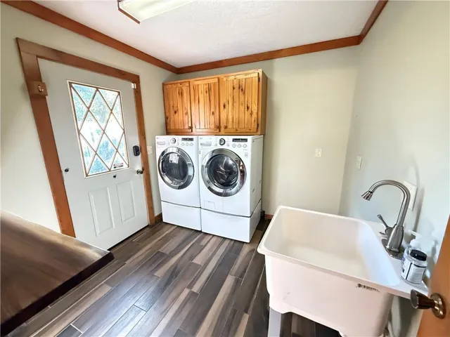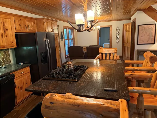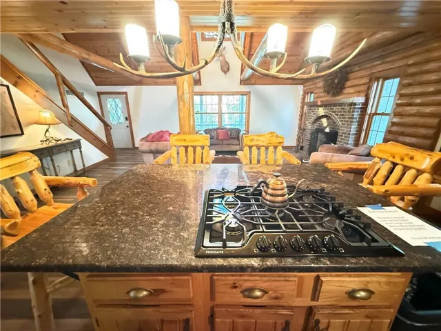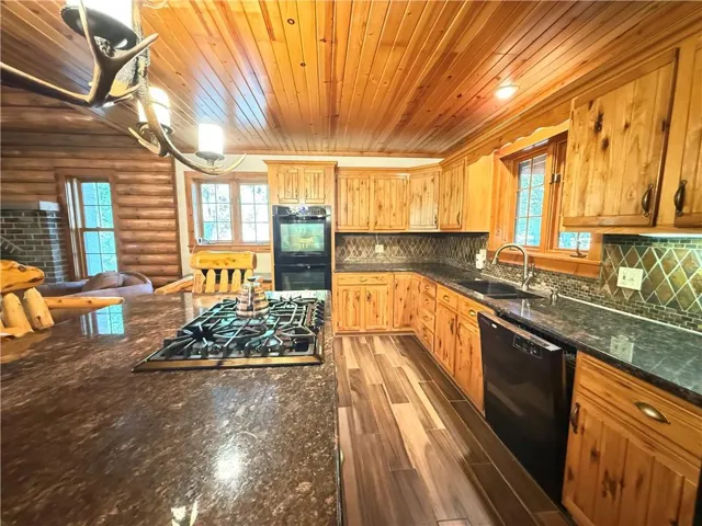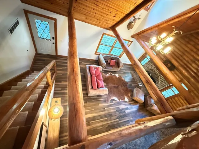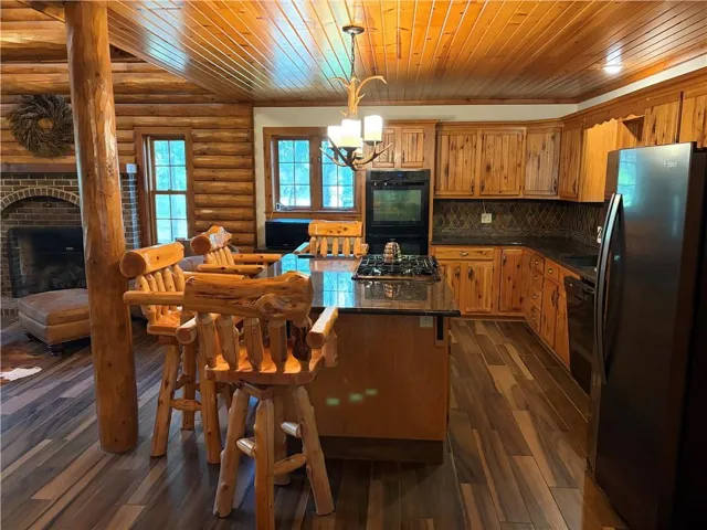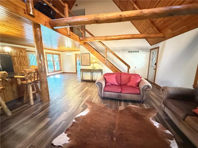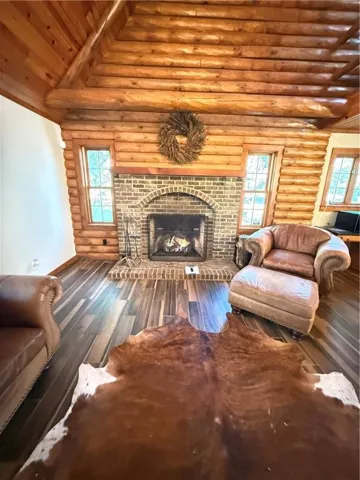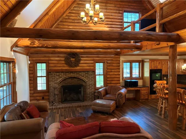 +"PublicRemarks": "Rustic Charm Meets Modern Comfort! This one-of-a-kind log cabin home offers an open floor plan with soaring tongue-and-groove ceilings, set on over 3 acres of peaceful, wooded scenery. Enjoy the beauty of nature year-round from the spacious covered front and back porches—perfect spots to relax or entertain. Inside, an unfinished basement with private entry provides endless possibilities—whether for a workshop, home gym, or a second living area once finished. Recent updates include granite countertops, low-maintenance tile flooring, and select light fixtures. The oversized laundry room features built-ins, a sink, and doubles as a mudroom with direct access to the backyard. A large metal building with 6” concrete flooring provides ideal storage for an RV, boat, or workshop. The building is insulated and can be heated by the wood burning stove behind it. The oversized garage also offers extra depth and width for convenience. Offering both charm and functionality, this home is an exceptional value in the area!"