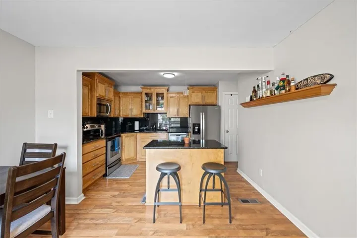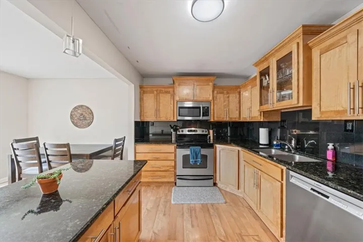 +"PublicRemarks": "Come see this spacious, maintenance-provided townhome in the highly sought-after Tanglewood Estates! The main level features beautiful, durable LVP flooring, vaulted ceilings, a cozy fireplace, and tons of natural light. The open kitchen offers an eat-in island, granite counters, an undermount sink, stainless steel appliances, and a pantry. The extremely spacious primary suite includes a large walk-in closet and a private ensuite bath. The finished basement adds even more living space with a second fireplace and a newly remodeled bathroom. Major mechanicals have also been updated in the last five years—including the furnace, air conditioner, and water heater. Enjoy the outdoors on the nice-sized deck overlooking a fenced-in lower-level patio. Maintenance-provided exterior care means you can spend more time relaxing and less time on upkeep. All of this in a prime location within the Shawnee Mission School District—just minutes from shopping, dining, and easy highway access!"