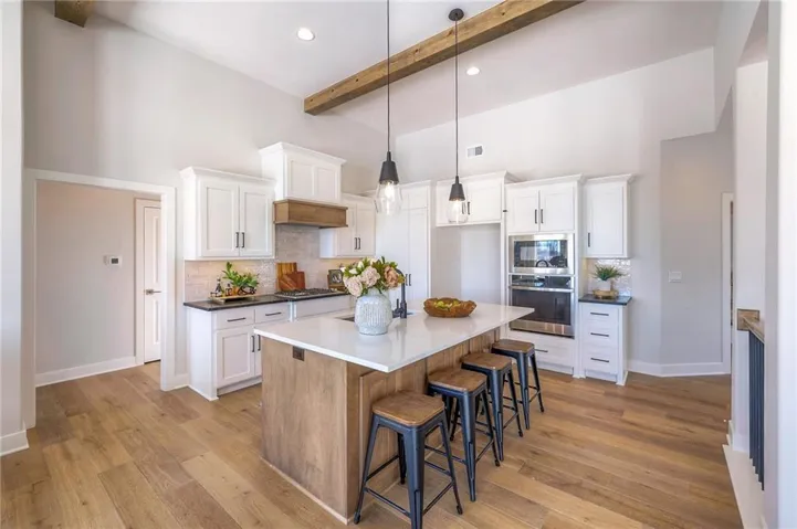 +"PublicRemarks": "JFE Construction brings their fabulous Bayberry Rev. 1.5 sty plan to Johnson Counties newest maintenance provided community of Prairie Canyon! This beauty sits on a walkout lot with SE rear exposure backing to greenspace w/dramatic long vistas! Cathedral vaulted ceilings in the entry, Great rm & thru to the covered deck with FP. Open concept plan with Great rm., kitchen & dining all open to each other, large island & spacious pantry. Two bdrms & 2 baths on the main floor, 2 bdrms. & 1 bath down with plenty of Family & recreation space which includes a fantastic wet bar!"