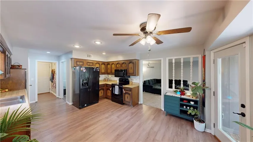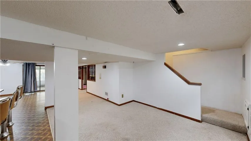 +"PublicRemarks": "You have to stop by and see this adorable 4-bed, 2.5-bath side-by-side split—it's the ideal starter home in a quiet cul-de-sac! The spacious living room features newer carpet and lots of natural light beaming in through the front windows. The bright white kitchen offers plenty of cabinets, a glass-top range for easy cleanup, and a peninsula island that provides extra space for food prep or casual seating for that quick bite. Fridge stays! The dining room walks out to newly built stairs and a patio. The fully privacy-fenced yard is perfect for grilling, relaxing, or letting your fur babies roam and play! Freshly Painted interior! The primary bedroom boasts fresh paint, his-and-her closets, vaulted ceilings, and a private en-suite bathroom. Oversized secondary bedrooms share a full, updated bathroom with a shower-over-tub combo. The dormer bedroom on the top level is a true 4th bedroom, complete with vaulted ceilings and a closet. The lower level walks out to the backyard from the second living room, equipped with a cozy gas log fireplace, brick hearth, and built-in shelving on either side. There's plenty of room for storage in the massive subbasement. The level driveway is perfect for shooting hoops too! Washer, dryer, and fridge all stay!"