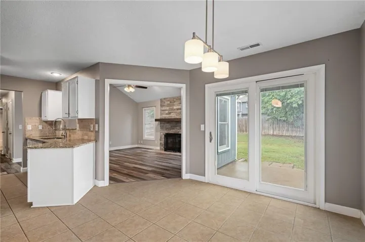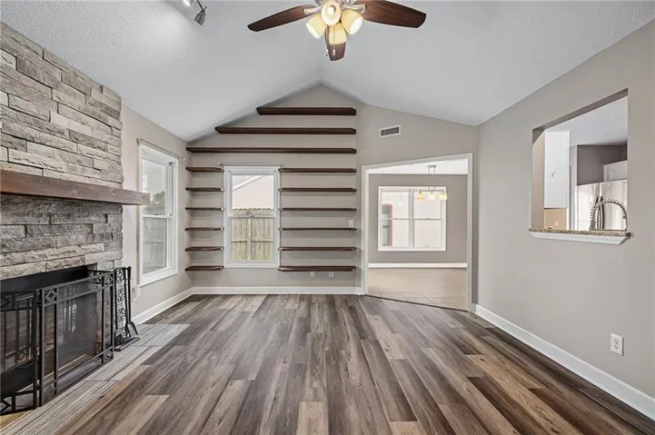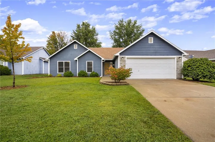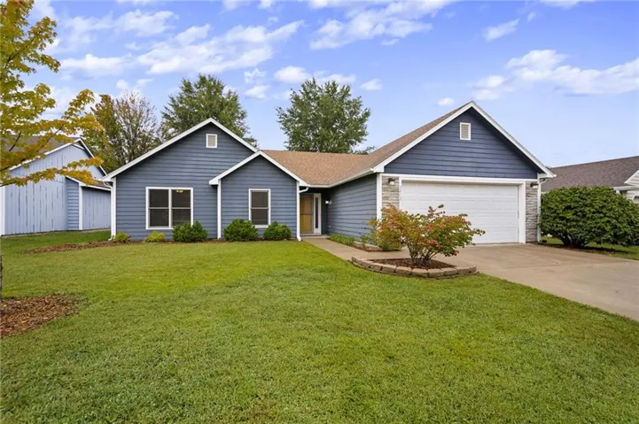 +"PublicRemarks": "This charming ranch home in Northwest Lawrence is a joy to show, offering a perfect blend of comfort, convenience, and style. The spacious open Great Room features vaulted ceilings, a cozy fireplace, a ceiling fan, a wall of floating shelves, and an abundance of natural light, creating an inviting atmosphere. The kitchen is well-appointed with plenty of cabinets, stainless steel appliances, granite counters, and the refrigerator is included. A wonderful opening between the Kitchen and Great Room ensures a seamless flow, allowing everyone to feel connected during gatherings. The thoughtfully designed floor plan places the Primary Bedroom Suite on the back side of the home, providing privacy and featuring a huge walk-in closet and a private bathroom. On the front side, two additional bedrooms offer flexibility, with the middle bedroom being ideal for a home office bathed in morning light. A second bathroom is conveniently located near both bedrooms. The conveniently located laundry room also includes a pantry. This home boasts a brand new high efficiency furnace and air conditioner. The location is unbeatable with Deerfield Elementary School nearby. Commuters will appreciate the quick access to I-70 highway, while outdoor lovers will enjoy the close proximity to Deerfield Park with a basketball court, skate park, playground and walking paths. With its fantastic layout, modern upgrades, and unbeatable location, this home is a must-see. Schedule your showing today!"