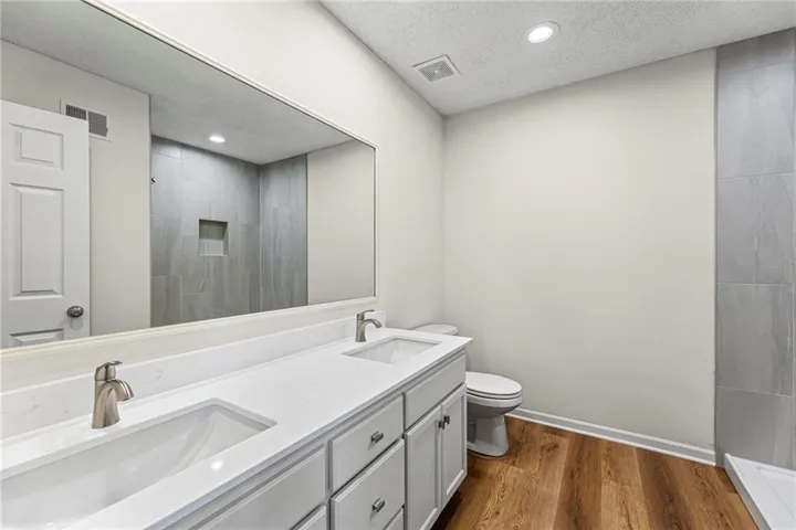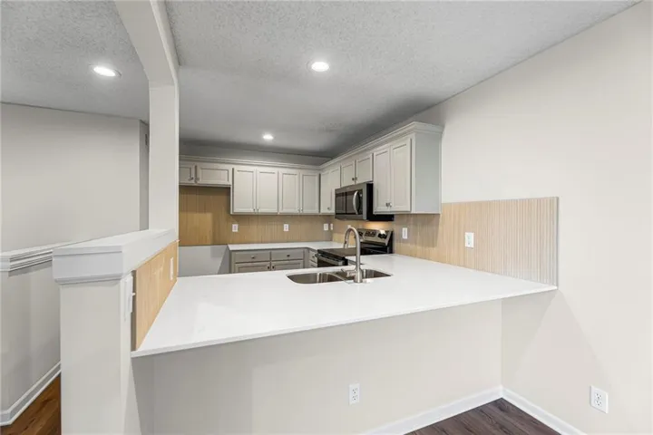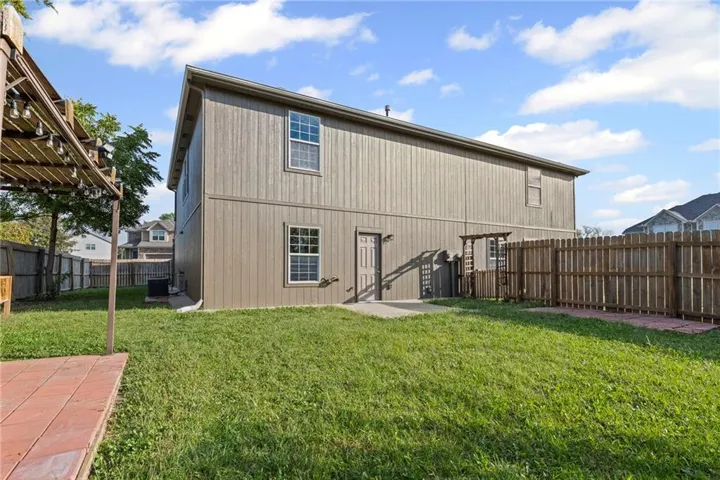 +"PublicRemarks": "This freshly renovated half duplex in West Shawnee features new luxury vinyl flooring throughout, updated kitchen and bathrooms, and new exterior and interior paint. The upper level features an open concept kitchen with room for barstool and a large dining room table which opens to the large living room, plus a spacious primary bedroom with ensuite bathroom featuring a double vanity and large shower. The lower level can also be accessed from the garage and offers two additional bedrooms, a second full bathroom, and a laundry room. The lower level walks out to the fully fenced back yard with a paver patio and pergola."