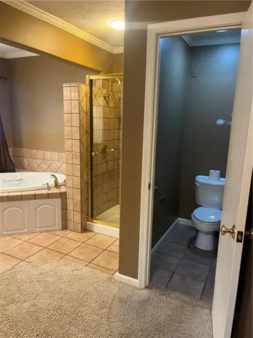 "LongDescription" => "Bedroom with crown molding, light wood-style flooring, and recessed lighting"