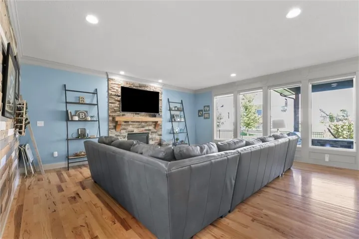 "LongDescription" => "Unfurnished living room featuring a fireplace, light wood finished floors, and a chandelier"