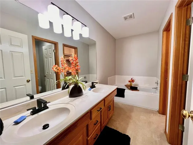 +"PublicRemarks": "2 bedrooms on the main floor with 2 full baths. Office or Dining Room and Laundry are on the main floor. BRAND NEW INTERIOR PAINT! Large kitchen with spacious breakfast area. Enormous great room with fireplace. 2-Car garage. This beautiful property has new lights, handles and pulls on the drawers in the kitchen and bathrooms. Primary bedroom has a large private bathroom with new shower door and walk-in closet. All of the woodwork has been cleaned and polished with great detail. Full Basement. * HOA does Not provide trash pickup and the HOA doesn't insure the roof."