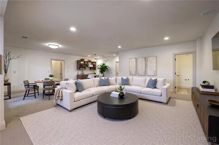 "LongDescription" => "Finished below grade area with light carpet, wooden walls, and recessed lighting"