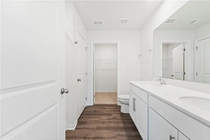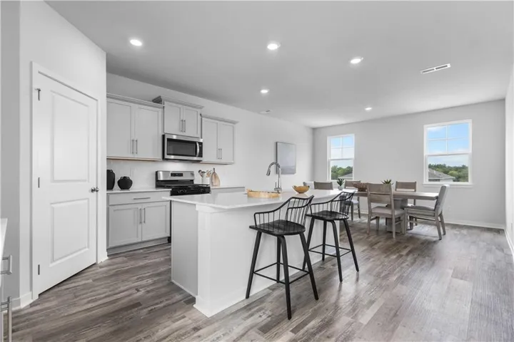 The Hillman offers thoughtful details throughout, from a two-car garage with extra storage to a gourmet kitchen with quartz countertops, painted maple cabinetry, and Whirlpool® stainless steel appliances. Upstairs, the primary suite provides a relaxing retreat with dual vanities, a 5-foot shower with glass enclosure, and a spacious walk-in closet. Durable luxury vinyl plank flooring runs through high-traffic areas, while a bedroom-level laundry room adds everyday ease. Smart home technology, energy-efficient windows, and a high-efficiency furnace complete the balance of comfort and convenience.\r\n