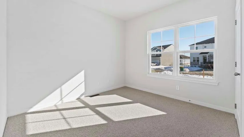 The kitchen features quartz countertops, painted maple cabinetry, and Whirlpool® stainless steel appliances, complemented by 9-foot ceilings and abundant natural light throughout. The primary suite offers a spa-inspired retreat with dual sinks, a spacious walk-in shower, and an expansive closet. Secondary bedrooms and baths are conveniently positioned to provide privacy while maintaining an efficient footprint. With smart home features, durable luxury vinyl plank flooring, and an attached two-car garage, the Chatham balances elegance with everyday practicality.\r\n
