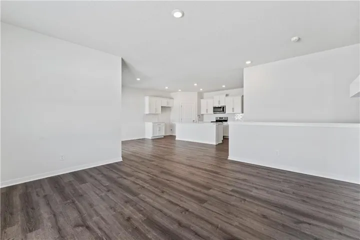 "LongDescription" => "Kitchen with appliances with stainless steel finishes, white cabinetry, tasteful backsplash, a breakfast bar area, and recessed lighting"