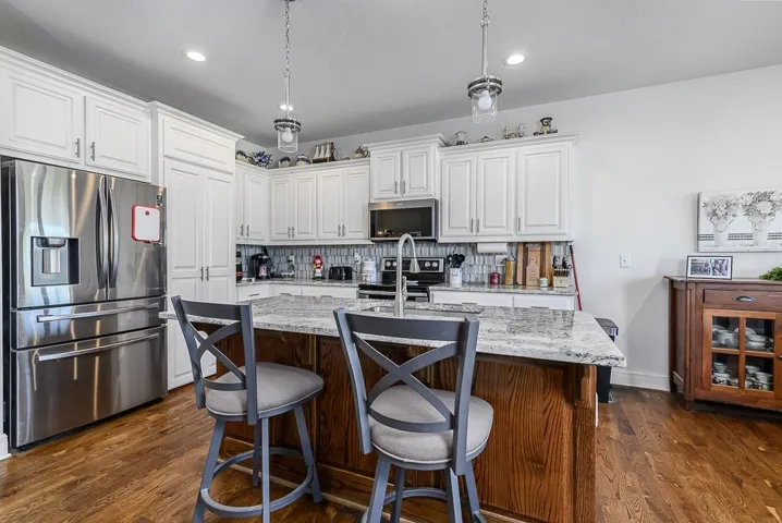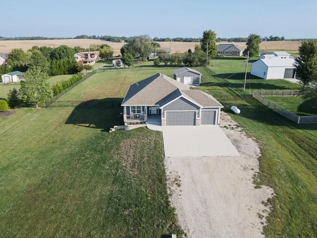 +"PublicRemarks": "No fault of seller back on market. GORGEOUS 4 BEDROOM REVERSE 1.5 STORY ON OVER AN ACRE WITH STUNNING COUNTRY VIEWS! This beautiful home offers the perfect blend of comfort, style, and space. The open floor plan features a large kitchen with granite counters, an oversized island, walk-in pantry, and rich hardwood floors that flow into the dining and great room areas. The inviting great room includes tall ceilings and a cozy fireplace—ideal for relaxing or entertaining. The spacious main-floor master suite is a true retreat, featuring a luxurious bath with double vanities, a walk-in shower, and a huge closet with direct access to the laundry room. The finished basement expands your living space with two additional bedrooms, a family room, full bath, and plenty of storage, plus storm shelter under front porch. Step outside to enjoy the peaceful views from your patio or gather around a fire pit on crisp evenings. The property also includes a 24x24 detached garage—perfect for extra vehicles, a workshop, or hobby space. With over an acre of land, this home delivers the tranquility of country living while being just minutes from city conveniences, shopping, dining, and highway access. This one truly checks all the boxes!"
