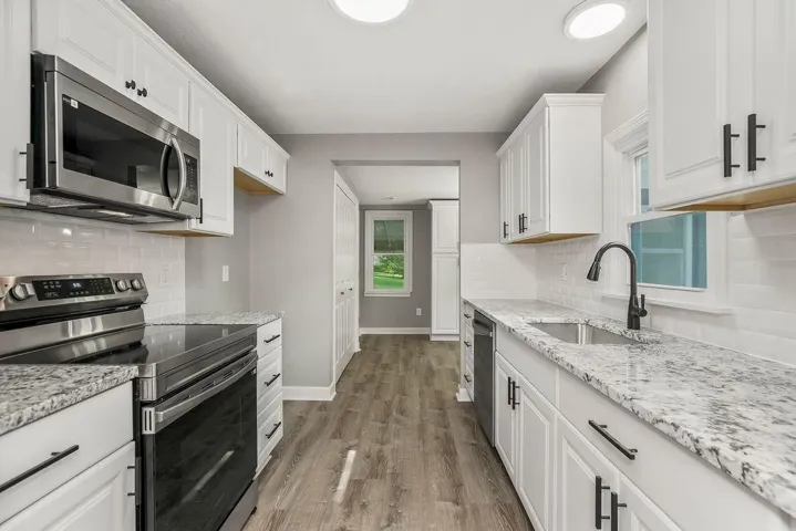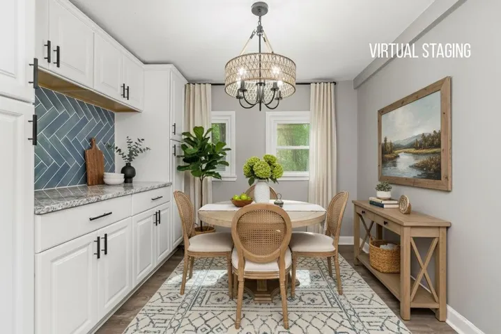 +"PublicRemarks": "Fantastic renovation of this Charming 2 bedroom Ranch home. BONUS: It sits on 1.43 acres!! NEW ROOF, NEW HVAC, NEW WINDOWS, NEW DOORS, FLOORS, FIXTURES & HARDWARE. NEW FRONT DECK leads you up to the front door and provides a great space to relax. This home has full interior and exterior paint, Lifetime luxury vinyl wood plank flooring, new carpet in the bedrooms. Both baths are fully renovated and stunning! New white raised panel kitchen cabinets have crown molding and are accentuated with black hardware, beautiful GRANITE, and STAINLESS appliances. The dining area provides more great storage with 2 pantries framing a buffet area with lovely backplash of smokey blue tiles in a classic herringbone pattern. Rattan light fixture is the icing on the cake for this room. Fantastic covered deck for entertaining. Virtually Staged photos are provided to give you inspiration and a look at how adorable this home can be! Schedule your showing today! Note: Listing agent is related to seller."