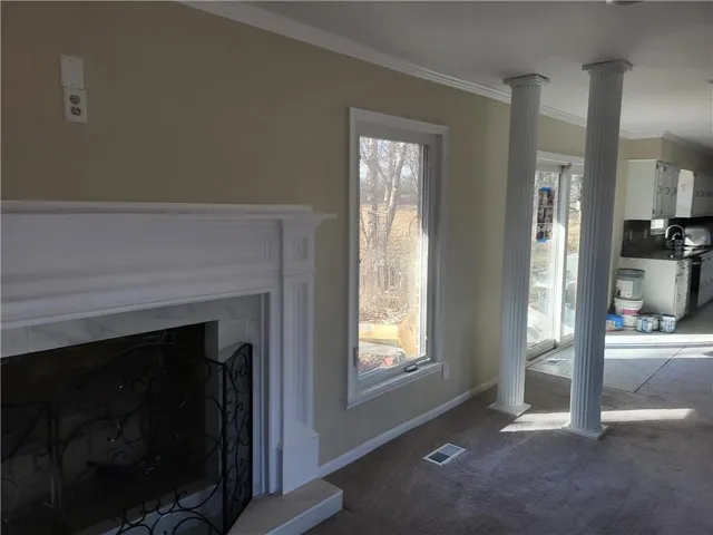 "LongDescription" => "Unfurnished living room with ornamental molding and light colored carpet"