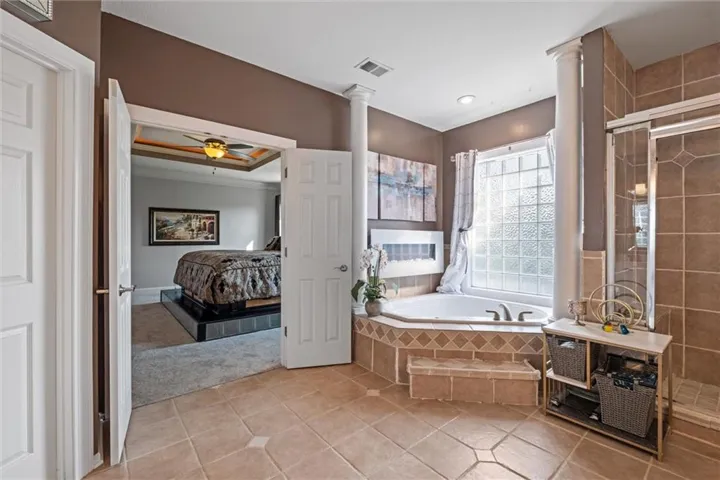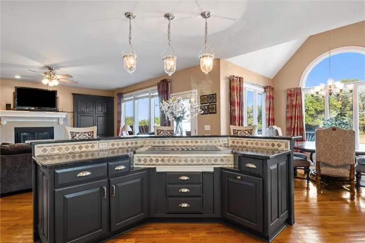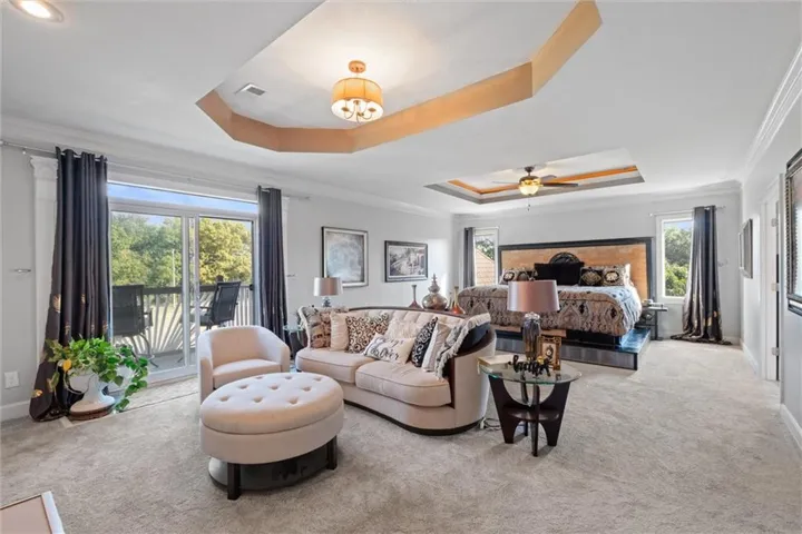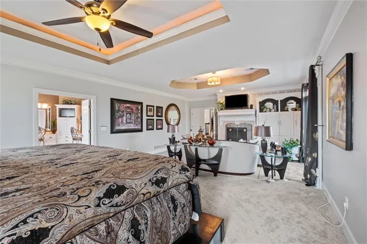 Inside, you’ll find a large kitchen with granite counters, center island, breakfast bar, and adjoining dining space. Expansive rooms with volume ceilings create an open and inviting feel throughout. Each bedroom offers private bath access, and the primary suite is truly a retreat—complete with a sitting area, fireplace, spa-like bath, and a walk-in closet of exceptional size.\r\n