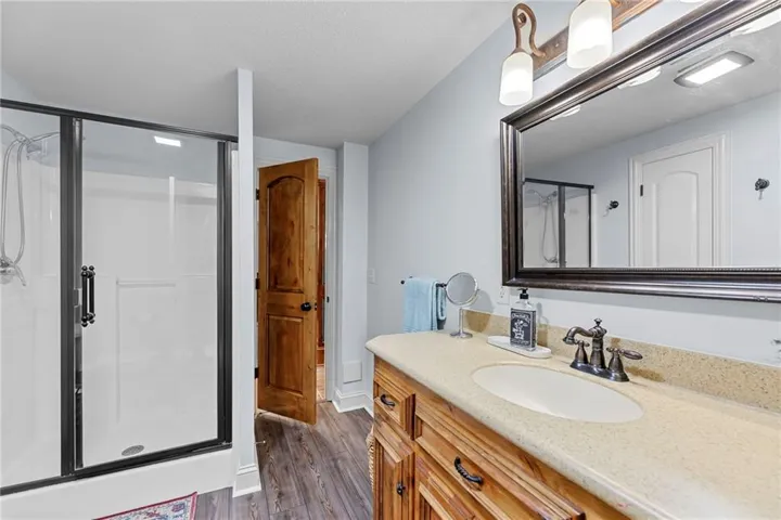 +"PublicRemarks": "Spacious 4-bedroom, 3 full bath home tucked into a quiet cul-de-sac! Enjoy fresh exterior and interior paint, newer hardwood floors throughout, vaulted ceilings, and a finished lower level perfect for entertaining—complete with a 4th bedroom. Step outside to a walkout backyard featuring an incredible outdoor living space. Situated on a generous corner lot with easy access to a nearby walking trail. Just minutes from Mahaffie Elementary and located near Olathe’s growing amenities. Come see it for yourself!"