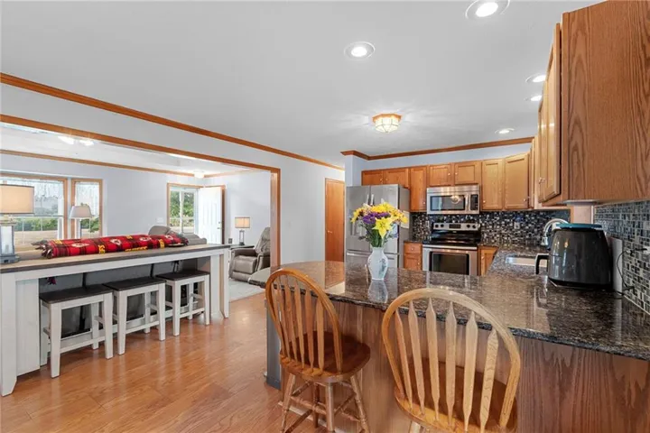+"PublicRemarks": "Nestled on approximately 10 acres, this 3-bedroom ranch-style home offers 1,648 square feet of comfortable living space surrounded by the sights and sounds of nature. The main level features three bedrooms, one full bathroom, an eat-in kitchen, a spacious dining room, and a welcoming living room—ideal for gathering after a day outdoors. An unfinished walk-out basement provides 2 car garage and excellent potential for added living space, storage, or a home workshop. Step outside to a nicely landscaped yard, a large deck with ramp access for your outside entertaining, back patio, large garden area, and a 30x40 outbuilding—perfect for equipment, livestock supplies, or country hobbies. Rolling hills, timber, and abundant wildlife create a peaceful, rustic setting. A small creek completes the outstanding backdrop and invites exploration at every turn. Whether you’re dreaming of a hobby farm, a quiet homestead, or a place to hunt and enjoy the outdoors, this property delivers authentic country living."