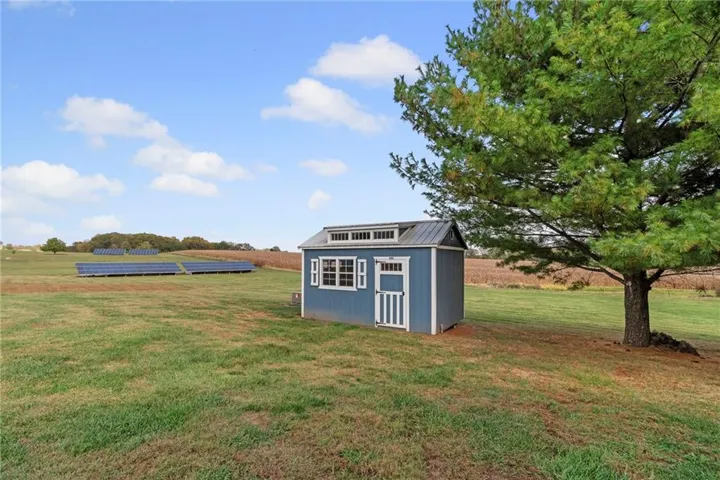 Step outside to the covered back porch, where you can sip your morning coffee while watching the sunrise and unwind in the evening as the sun sets over your quiet acreage. A garden shed provides the perfect spot for your outdoor tools or hobby space.\r\n