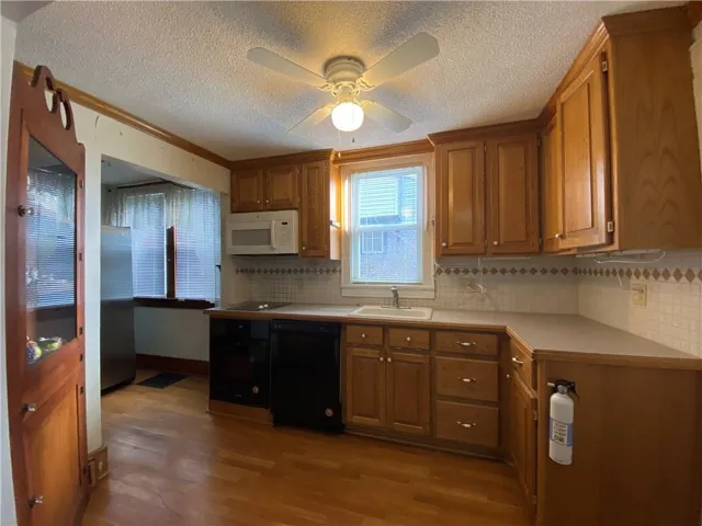 Update Kitchen with island! Large Patio ! Oversize shed ! Formal Dining with unique sliding door to main floor bedroom! Large entry foyer ! Fireplace is gas stove in Living Room !Stainless Steel appliances- no warranty on refrigerator! Corner\r\n