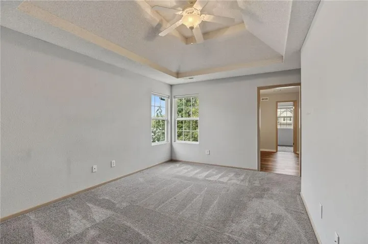 Upstairs, the large primary suite boasts a recessed ceiling, walk-in closet, and private bath with a double vanity, walk-in shower, and separate water closet. Two additional bedrooms share a Jack-and-Jill bath with a double vanity and shower-over-tub combination. The laundry area, complete with washer and dryer, is conveniently located on the bedroom level.\r\n