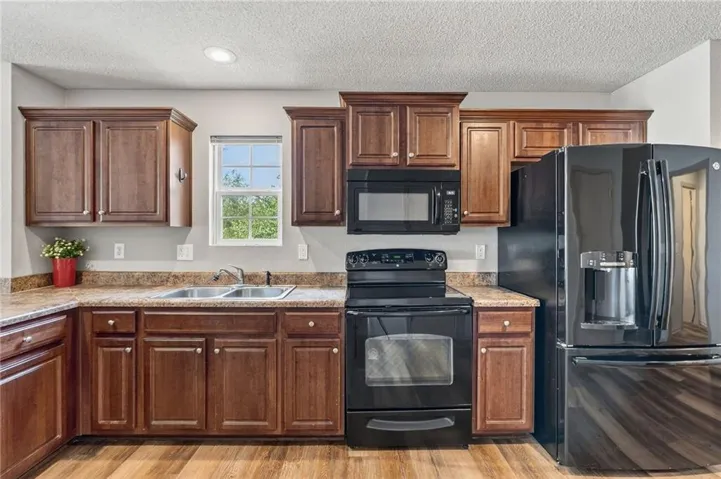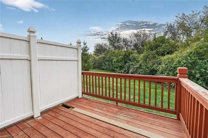 The inviting main level features a spacious great room with a gas fireplace, art niche, and access to the painted deck overlooking a grassy common area, perfect for relaxing or entertaining. The fully equipped eat-in kitchen offers abundant cabinetry and counter space, a peninsula with bar seating, and a breakfast area accented by a stylish chandelier. All appliances remain, including a French-door refrigerator with dispensers, smooth-surface range, built-in microwave, dishwasher, and disposal. A convenient half bath is located just off the kitchen.\r\n