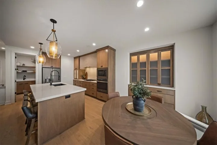 +"PublicRemarks": "Introducing the brand new Augusta V by Bickimer Homes with upgraded spaces and slight tweaks to this favorite 1.5 Story plan. Impressive new modern mountain\u{A0}exterior with high peaks, smooth limestone trim, black window frames and soft misty green gray color combination. Inside features an ideal\u{A0}1.5 Story\u{A0}plan with a main floor primary suite with lux style bath, 2nd bedroom/ office/piano room, great room with wood accent beams and cast concrete fireplace, impressive kitchen with Thermadore range and smoky beige quartzite kitchen Island, butler's pantry drink station, and a BRAND NEW mud hall drop zone leading to walk in pantry. A stunning combination\u{A0}of decor with soft white, creamy beige, warm wood flooring with soft green painted cabinet mixed with white and gold trim lighting. WOW! The lower\u{A0}level is finished with a large TV room, amazing L shaped\u{A0}stone trimmed wall bar, built in pub style booth, gym, sauna room with cold plunge tub and plenty of storage\u{A0}space. The upstairs has just as much to offer with an innovative set of bunk beds in the loft space in addition to 3 bedrooms. Perfect for family fun or guests to bunk all in one room together.\u{A0} Century Farms has a spectacular club house with a farmhouse twist ideal\u{A0}for neighborhood gatherings or private parties.\u{A0} It features\u{A0}a small prep area, fireplace, pub tables, reading loft and a fitness center. The large swimming pool includes a slide and is long enough for three competitive swim lanes. There are plenty\u{A0}of neighborhood activities\u{A0}with a fire-pit, two pickle-ball courts and a basketball\u{A0}hoop, farm themed animal kids play area, wildflower walkways and a community garden. Century Farms is conveniently located near the brand\u{A0}new Bluhawk shopping\u{A0}center, Heritage Park, the Johnson County Trail system and the Overland Park Arboretum.\u{A0}Come join the fun in Century Farms, a unique one of a kind upscale new home community in Overland Park. BLUE VALLEY SCHOOLS"