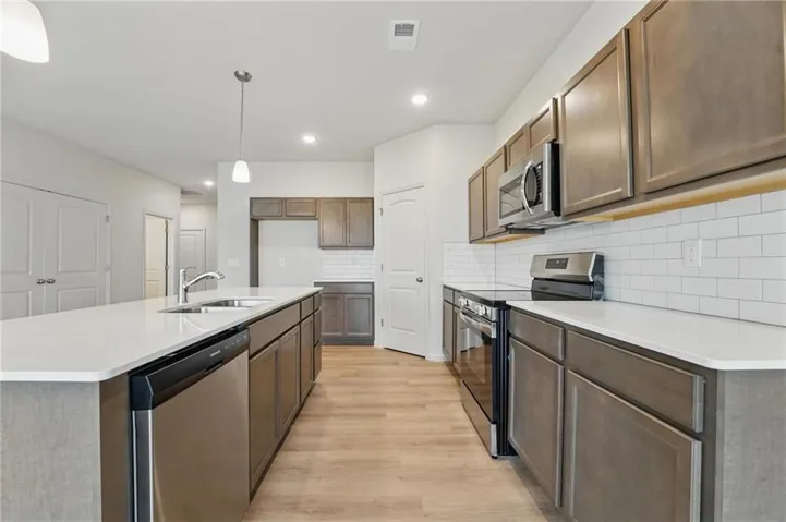 The kitchen is the heart of the home with a nice sized island for prep and seating plus a walk in pantry to keep counters clear. Flow from kitchen to dining to living spaces creates a seamless hub for weeknights and weekends alike. Upstairs you will find well sized secondary bedrooms that flex for guests, office, or hobbies. The private primary suite offers a calm retreat with a comfortable bath and practical closet space. A convenient half bath serves the main level while two full baths support busy mornings.\r\n