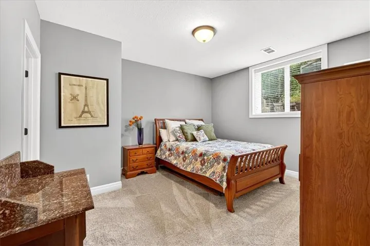 Downstairs, the finished lower level is an entertainer’s paradise—featuring a stylish bar, spacious guest bedroom, and full bathroom. It’s the perfect extension of the home’s living space, designed for movie nights, game days, or overnight guests.\r\n