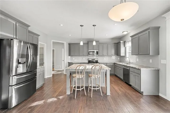 +"PublicRemarks": "Original owners have maintained and upgraded this newer home providing tons of space to spread out! Upgrades include: smart home security with cameras, window treatments, upgraded dishwasher, fridge, washer and dryer- All Stay, finished basement with dry-bar including 2 beverage fridges, 5th full bath and rec room wired for surround sound, basketball goal and privacy fenced backyard with dual gates! Huge savings compared to building new! Truly Built to Entertain- Greet guests from covered front porch to the open-concept main level and covered deck with gorgeous sun-set views! Main level 5th bedroom- ideal home office, visiting in-laws, or both. Each of the\u{A0}upper 4 bedrooms includes a walk-in closet and en-suite bath access- allowing privacy for everyone. Carpet on the main level was replaced, paint touched and home professionally cleaned after move out- ready for you to move right in!"