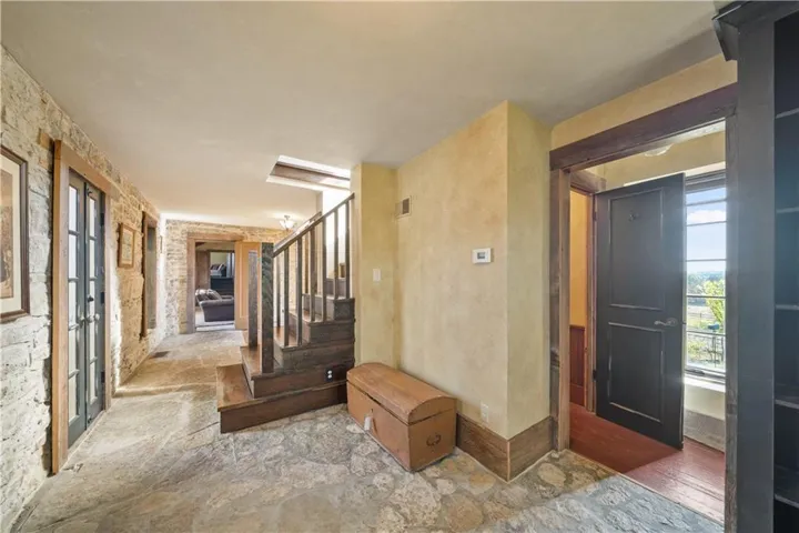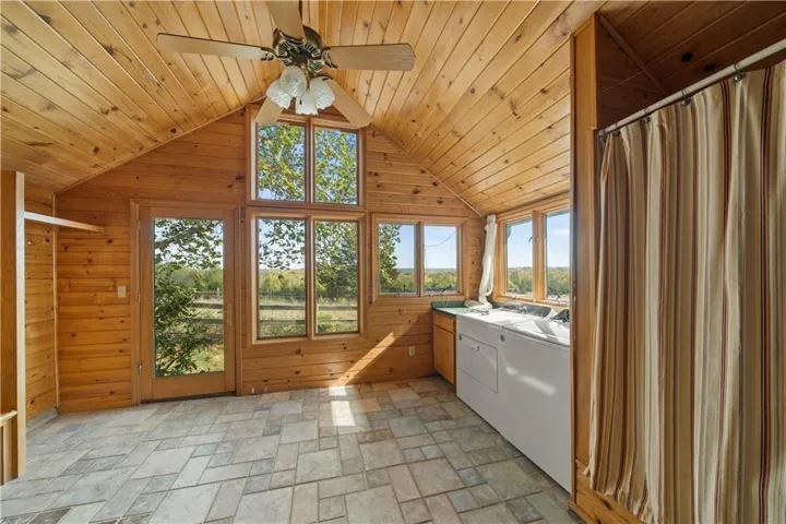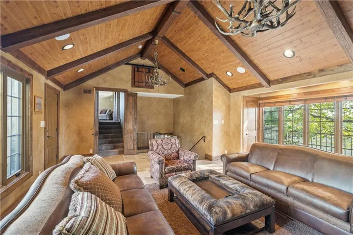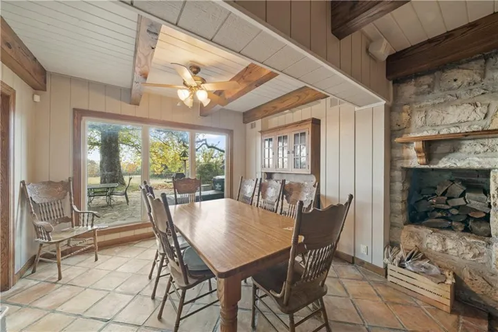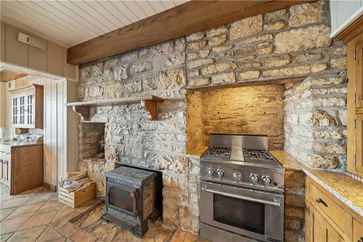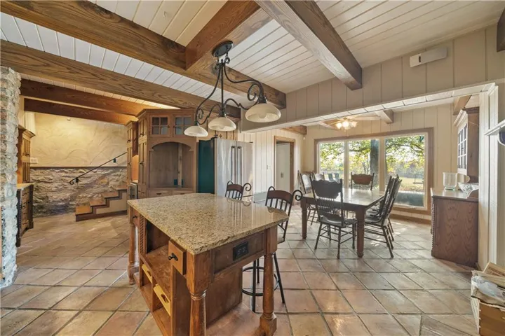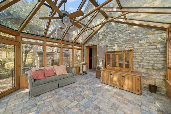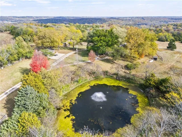 +"PublicRemarks": "DON'T MISS THIS SECLUDED homestead on 30.47 acres which includes a beautiful home, barn, horse barn, two car garage with guest quarters on a gated estate. Located hidden in the hills overlooking Shawnee Mission Park minutes away from all conveniences and schools. Well built and maintained stone home that includes all your modern updates and improvements. Updated chef’s kitchen with high end cabinets, wine cooler, granite topped island, granite counter tops and Jenn Air Appliances. Newer roof, sunroom and inground pool. All additions that have been added have used the same stone as original construction. Master suite updated with sound system, walk-in closet, bathroom with double vanity, shower, bathtub and heated floor tiles. Two HVAC systems, fireplace, wood burning stove will keep you cool in the summer and warm in the winter. A Generac generator will keep everything running smoothly if that rare outage happens. Large laundry room that even includes a shower/bath area for Fido. The two-car garage has a very comfortable guest quarters which includes a full bathroom with shower. Wildlife abounds, with frequent sightings of whitetail deer and turkeys. This property is zoned as AG (Agricultural) so bring those animals and gardening ideas. Horse barn includes a separate paddock area to allow horses to move freely. Water hydrants are located in multiply locations to use to wash off that equipment or water the animals as well as having a 23 zone sprinkler system installed surrounding the property. Enjoy that first cup of coffee sitting in the Sunroom as the deer wonder the valley in front of you or getting a drink from the aerated pond. For that outdoorsman two high end gun safes will remain with the property.This property includes a residential alarm and surveillance camera system with 24 hour monitoring. This property is also listed under Land MLS #2595261"