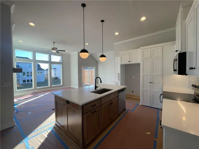 The Hampshire by SAB Homes offers exceptional layout, comfort, and style—perfect for a wide range of buyers and families of all sizes. From the moment you enter, you’ll appreciate the open flow and clean sight lines connecting the kitchen, great room, and dining area. The well-appointed kitchen features a 5-piece stainless steel appliance package, a gas range, a walk-in pantry, and a large island ideal for cooking and gathering. The primary suite delivers a serene retreat with double vanities, a tiled shower, soaking tub, and a generously sized walk-in closet. The conveniently placed laundry room sits between the mud hall and the primary closet for easy everyday living. The finished lower level adds even more flexibility, offering two additional bedrooms, a full bath, a built-in wet bar, a spacious family room, and a dedicated gaming/entertainment space. Outdoor living is enhanced by a covered deck and patio, creating a seamless connection to the outdoors. Note: Photos or renderings may show optional or upgraded finishes not included in the standard plan. Enjoy a carefree lifestyle in this maintenance-provided community with lawn care, irrigation service, and snow removal for $198/month. Annual $900 HOA includes access to resort-style amenities: pool, fountains, outdoor kitchen and fireplace, pickleball court, putting green, clubhouse, and playground. The neighborhood sits directly across from Heritage Park.