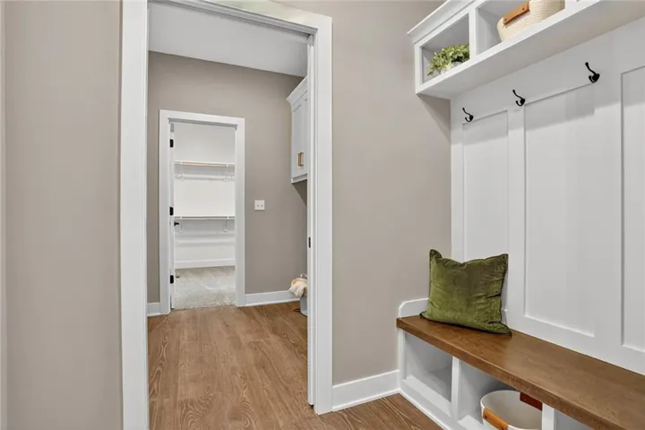 Designed for effortless living, this home offers main-level comfort with an open floor plan featuring durable Rev-Wood® flooring in main-level traffic areas, offering water and scratch resistance for lasting beauty and function. The designer kitchen showcases custom wood, soft-close cabinetry, a center island, built-in stainless-steel ENERGY STAR appliances, a vented hood, and a spacious walk-in pantry with two electrical outlets, great for small appliances and keeping countertops clutter-free. Retreat to the primary suite with tray ceiling and a walk-in closet offering direct access to the laundry room for added convenience. The finished walkout lower level includes two additional bedrooms, a rec room with wet bar and beverage fridge, and a full bathroom, ideal for guests or family. Additional highlights and upgrades include comfort-height toilets on the main level, Pella low-E windows, a high-efficiency furnace, and an insulated, painted garage with keypad entry and built-in Wi-Fi openers, plus an in-ground sprinkler system. Upgraded tile, quartz countertops, lighting, plumbing, and trim are featured throughout. Relax outdoors on the enlarged, low-maintenance composite deck, fully screened with a privacy wall, along with a covered patio below, all overlooking serene green space. Schedule your showing today!