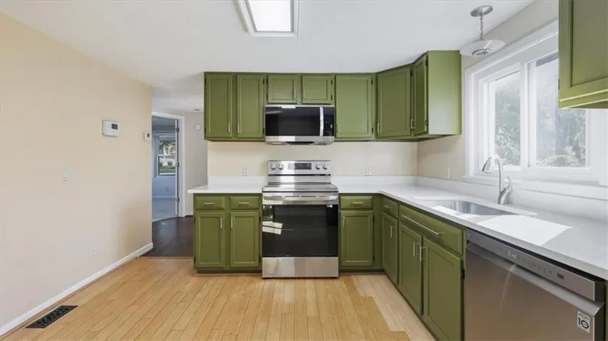 +"PublicRemarks": "Spacious 4-bedroom, 3 full bath home tucked into a quiet cul-de-sac! Enjoy fresh exterior and interior paint, newer hardwood floors throughout, vaulted ceilings, and a finished lower level perfect for entertaining—complete with a 4th bedroom. Step outside to a walkout backyard featuring an incredible outdoor living space. Situated on a generous corner lot with easy access to a nearby walking trail. Just minutes from Mahaffie Elementary and located near Olathe’s growing amenities. Come see it for yourself!"