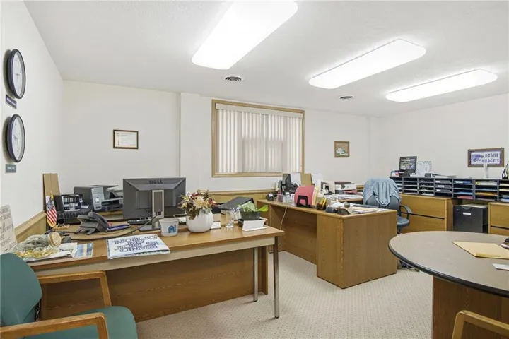 +"PublicRemarks": "Excellent opportunity available in the industrial park of Atchison, KS. This versatile property offers significant potential for a variety of business uses. Situated on over 2 acres, the building comprises 6,390 square feet and includes a spacious lobby/reception area, three generous offices, a restroom, a large packing or workroom, and a 4,899 square foot warehouse equipped with one oversized garage door and one dock door, both 12 foot doors. Constructed in 2000 with brick exterior, the facility features heating and cooling throughout."