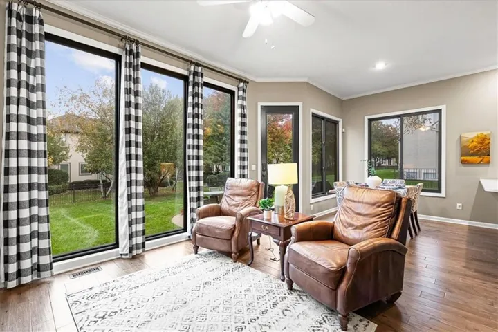 +"PublicRemarks": "Located in the highly desirable Wellington Park neighborhood, this original-owner home—built by the reputable Lambie Geer—has been lovingly maintained and thoughtfully cared for. Perfectly positioned just one block from the neighborhood pool, tennis courts, clubhouse, playground, and scenic walking trails, and only minutes from the elementary school and Johnson County Library, the location truly can’t be beat. The main level offers an ideal blend of elegance and everyday comfort, featuring a private office, formal dining room, inviting living room, and a beautiful kitchen with granite countertops that opens seamlessly to the hearth room—perfect for gathering and entertaining. A dramatic double-sided staircase leads upstairs to all four bedrooms, each with its own walk-in closet—an exceptional and rare feature. The finished lower level provides incredible versatility with an additional office or non-conforming 5th bedroom, full bath, TV area, space for a pool table or shuffleboard, and a wet bar—plus plenty of unfinished storage space. Enjoy relaxing evenings on the screened-in porch overlooking the large, fenced backyard. Tucked away at the end of a quiet cul-de-sac and located in the award-winning Blue Valley School District, this home is also just minutes from some of Johnson County’s best shopping and dining. A true Wellington Park gem—don’t miss this opportunity!"