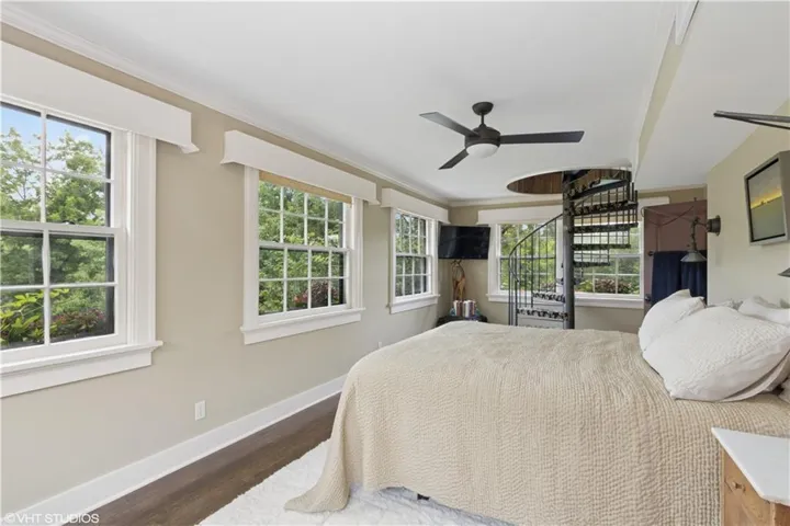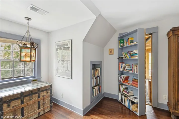 The third floor includes a vaulted theater/family room, two bedrooms, and a full bath. A hidden bonus room with rustic décor and a working Buck stove—accessed via secret bookcase door or spiral staircase from the primary suite—offers a cozy, one-of-a-kind escape.\r\n