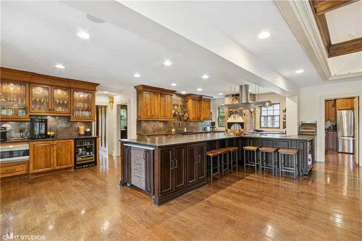 Inside, you’ll find six bedrooms, four and a half baths, zoned HVAC, and a rare three-car basement garage. The expansive kitchen and family room open to a resort-style outdoor retreat featuring a gunite pool, hot tub, built-in outdoor kitchen, and beautifully maintained gardens with dedicated herb and vegetable beds.\r\n