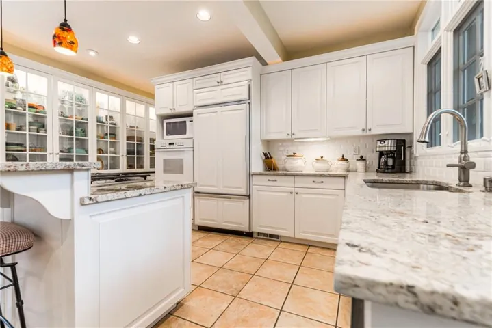 The updated kitchen is a true showpiece, offering marble countertops, a Sub-Zero \r\n
