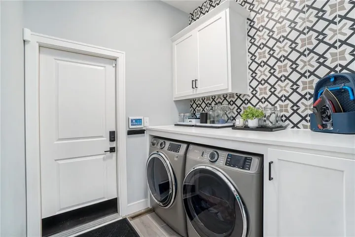 Boasting just over 3,000 square feet on a spacious corner lot, this is a 4-bedroom, 3.5-bath masterpiece. From the charming front sitting porch to the beautifully landscaped yard and inviting side porch, every corner of this home exudes warmth and style. Step inside to an open floor plan filled with natural light, soaring ceilings, and exquisite finishes. The chef’s kitchen is truly a showpiece — featuring high-end cabinetry, top-of-the-line appliances, an oversized island, 5-burner gas cooktop with pot filler and hood, drainage sink, and walk-in pantry. The kitchen opens seamlessly to the elegant dining area with built-in cabinetry and abundant storage. The great room is a true statement space with a stunning tiled fireplace and floor-to-ceiling windows framing picturesque lake views. Heated floors, custom window treatments, and an elevator add comfort and sophistication throughout. The main level primary suite offers a spacious walk-in closet, luxurious bath with double vanity, walk-in shower, and built-in cabinetry. A second main-level bedroom features custom built-ins and a Murphy bed. Laundry and mudroom are conveniently located off the kitchen, and the attached oversized 2-car garage can easily convert to a 3-car setup. Take the elevator to the lower level, where you’ll find an expansive family room, exercise space, two additional bedrooms, and a full bath. Every upgrade imaginable is already in place: smart home technology with WiFi-enabled thermostats, ceiling fans, and garage doors; electric and custom blinds throughout; a full sprinkler system; water softener and purification system; security cameras and alarm; heated floors; and even electrical outlets in every closet. The home also includes thoughtful ADA-compliant enhancements.