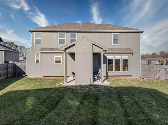 +"PublicRemarks": "You'll love this almost new 2-story in the Smithville School District. This well thought out floorplan gives you the open concept you want with sight lines from the kitchen into the living room. The beamed ceiling, gas fireplace and built-ins add character and warmth to your living room. The well-appointed kitchen is both stylish and functional with white cabinets, painted island topped with quartz counters, pantry and gas range. The laundry is on the 2nd floor along with all 4 bedrooms. You can take your entertaining outdoors to the covered patio with gas fireplace. The large corner lot is fenced. You'll love the location with a short 2 minute drive to Eagle Heights Elementary, 3 minute drive to Paradise Pointe Golf Complex and a 4 minute drive to Paradise Pointe Marina at Smithville Lake."