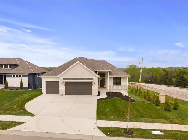 +"PublicRemarks": "Come explore the award-winning Shea II Ranch by DCB Homes! This 3-bedroom, 2-bath beauty features a striking new front porch elevation and an inviting open layout designed for modern living. The main level impresses with a vaulted ceiling spanning the Great Room and Kitchen, creating a bright, airy feel. The kitchen offers abundant cabinetry, a large island, built-in appliances with a gas range, and a walk-in pantry. A spacious dining area is a buyer favorite that opens to the back deck—perfect for entertaining. The primary suite features a walk-in shower, freestanding tub, double vanities, and a generous walk-in closet. Two additional bedrooms and a full hall bath are conveniently located on the opposite side of the main level, along with a laundry attached to the Primary and mudroom. **Optional Lower Level Finish would include a large rec room with optional bar, fourth bedroom, optional third full bath, and two large storage areas. A 3-car garage completes this fantastic plan. This home is at the PRE-CONSTRUCTION phase. Photos are of a similar home. Taxes are estimated. Lakeview Ridge is a new build community just west of Lake Olathe with great homes started and fantastic lots available. POOL coming in 2027. You can get to the neighborhood off of Dennis & Houston with easy access from K7 or coming from Lakeshore. Our Sales Office is located 14271 Houston. Our development is right next to Lake Olathe and neighborhood feeds into Clearwater Creek Elementary, Oregon Trail Middle School and Olathe West High School."