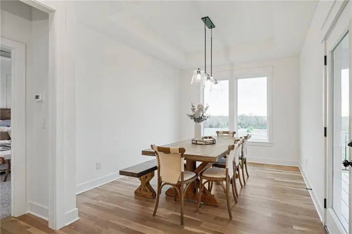 +"PublicRemarks": "Come explore the award-winning Shea II Ranch by DCB Homes! This 4-bedroom, 3-bath beauty features a striking new front porch elevation and an inviting open layout designed for modern living. The main level impresses with a vaulted ceiling spanning the Great Room and Kitchen, creating a bright, airy feel. The kitchen offers abundant cabinetry, a large island, built-in appliances with a gas range, and a walk-in pantry. A spacious dining area is a buyer favorite that opens to the back deck—perfect for entertaining. The primary suite features a walk-in shower, freestanding tub, double vanities, and a generous walk-in closet. Two additional bedrooms and a full hall bath are conveniently located on the opposite side of the main level, along with a laundry attached to the Primary and mudroom. The finished Lower Level includes a large rec room with bar, fourth bedroom, third full bath, and two large storage areas. A 3-car garage completes this fantastic plan. **This home is at the PRE-CONSTRUCTION phase. Photos are of a similar home. Taxes are estimated. Lakeview Ridge is a new build community just west of Lake Olathe with great homes started and fantastic lots available. POOL coming in 2027. You can get to the neighborhood off of Dennis & Houston with easy access from K7 or coming from Lakeshore. Our Sales Office is located 14271 Houston. Our development is right next to Lake Olathe and neighborhood feeds into Clearwater Creek Elementary, Oregon Trail Middle School and Olathe West High School."