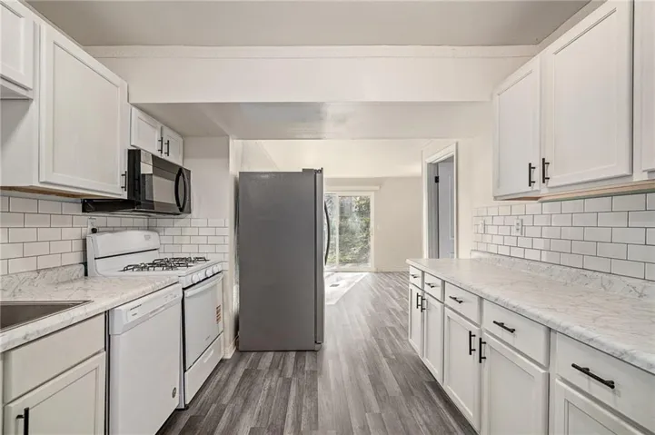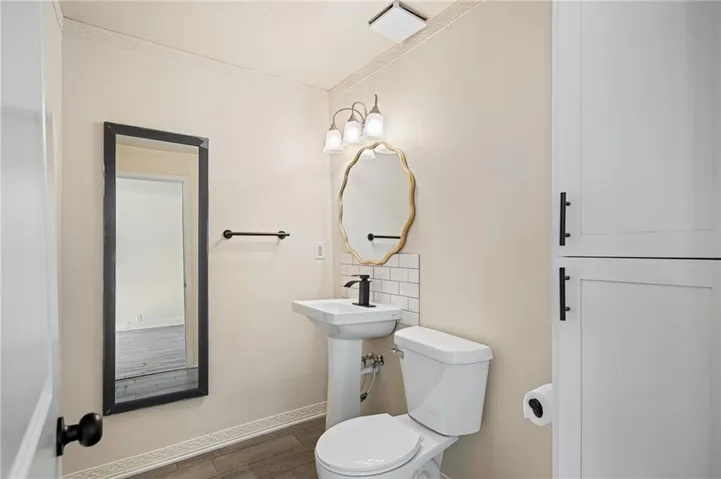 The stunning new kitchen features modern cabinetry, sleek counters, and an impressively large walk-in pantry. Need more flexibility? This oversized pantry can be reimagined as a huge primary closet or even expanded to convert the nearby half bath into a full bathroom- endless possibilities!\r\n