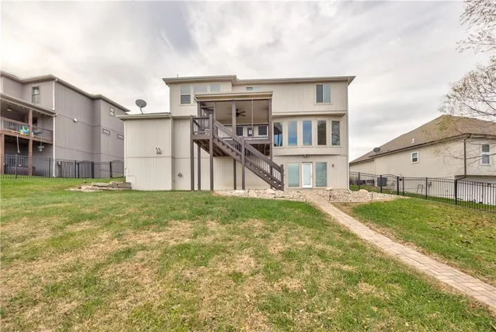 +"PublicRemarks": "Discover spacious luxury of this stunning Platte City, MO home. This stunning 5-bedroom home features a convenient main-floor bedroom and four additional bedrooms upstairs. The open layout boasts vaulted ceilings, custom built in cabinetry, luxurious wood flooring and abundant windows flooding the space with natural daylight—perfect for entertaining. Enjoy a fully framed basement ready for your custom finishing touches, a 3-car garage, and a beautiful backyard oasis. Your dream home awaits!"