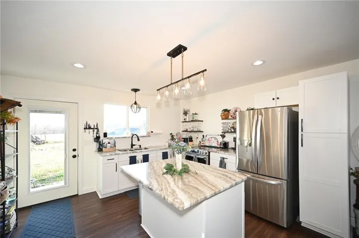 +"PublicRemarks": "Spacious 4-bedroom, 3 full bath home tucked into a quiet cul-de-sac! Enjoy fresh exterior and interior paint, newer hardwood floors throughout, vaulted ceilings, and a finished lower level perfect for entertaining—complete with a 4th bedroom. Step outside to a walkout backyard featuring an incredible outdoor living space. Situated on a generous corner lot with easy access to a nearby walking trail. Just minutes from Mahaffie Elementary and located near Olathe’s growing amenities. Come see it for yourself!"