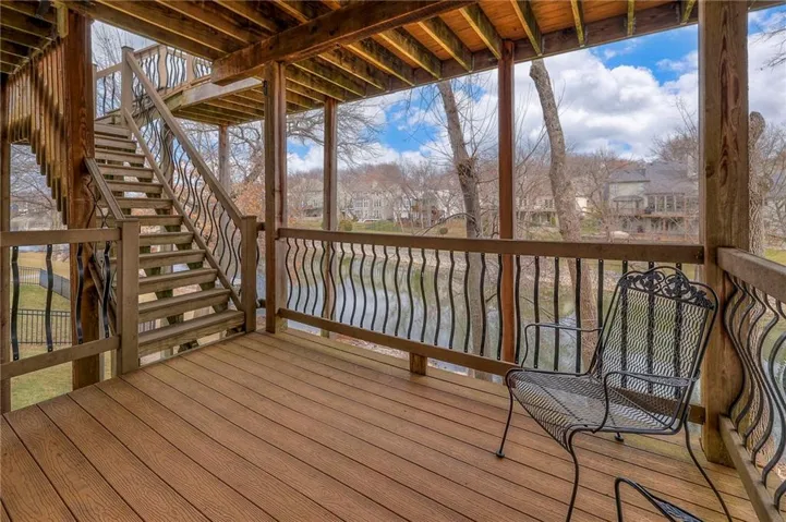 +"PublicRemarks": "Stunning lakefront home in sought after Lakewood community! Luxury main level living with character and quality finishes throughout! Spacious Great room with wood beams, gas fireplace, hardwood floors and wall of windows providing abundant natural light. Updated kitchen offers Quartz counters, all new stainless appliances and island with gas range that opens to the breakfast area with vaulted ceiling, skylights and cozy fireplace. The expansive deck with lake views spans the back of the home and is accessible from the primary bedroom, great room and kitchen-perfect for relaxing and entertaining! The primary suite has a walk in closet and private bath with tile floors, double vanity, whirlpool tub and tile shower. 2nd bedroom, 2nd full bathroom with tub/shower, formal dining and laundry room are also on the main level. The finished, walkout lower level includes a large family room with wet bar, 3rd bedroom with private full bathroom, office/non-conforming 4th bedroom, ample storage space and access to the the lower deck. New roof, fresh interior paint and new carpet throughout! Enjoy all of the neighborhood amenities including lake access, boat rental, swimming pools, golf course, marina, parks, clubhouse, fitness center, tennis courts. Convenient location close to highways, shops, dining and top rated Blue Springs schools- Chapel Lakes Elementary, Delta Woods Middle and Blue Springs South High School!"
